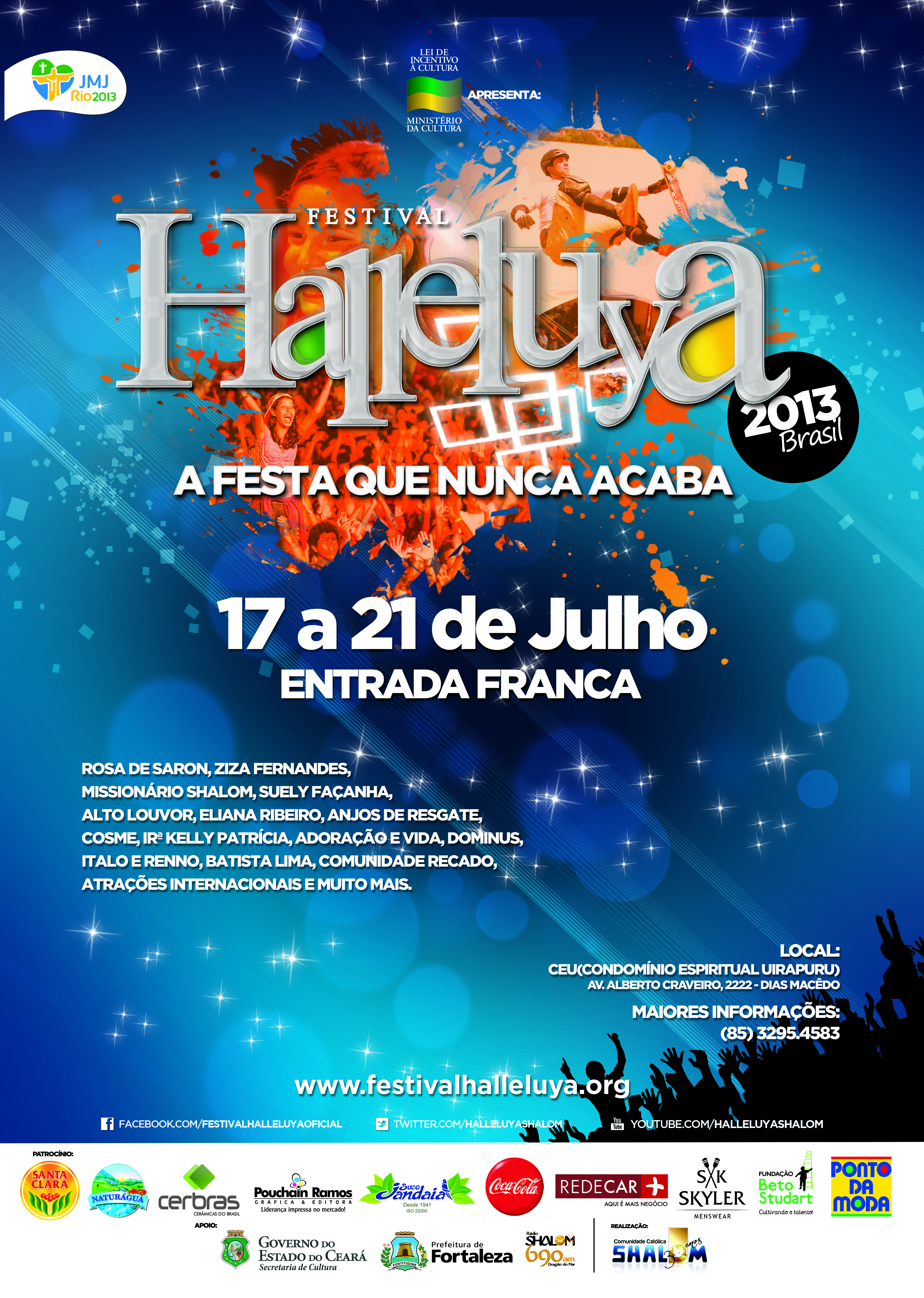 O Festival Halleluya é um dos maiores festival de Música da América Latina com shows nacionais e internacionais, reunindo mais de um milhão de pessoas em seus 5 dias de Evento.
