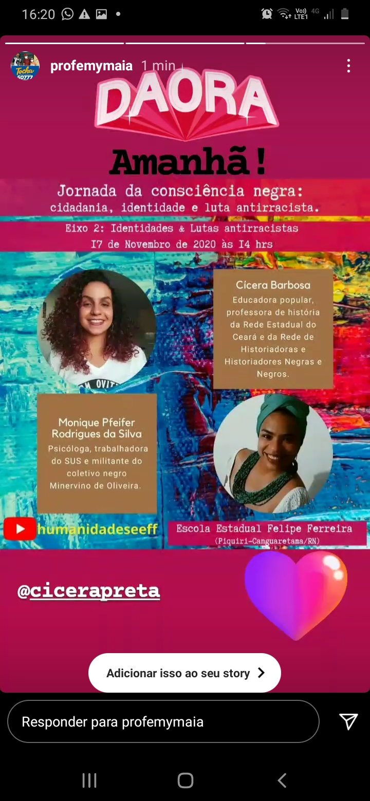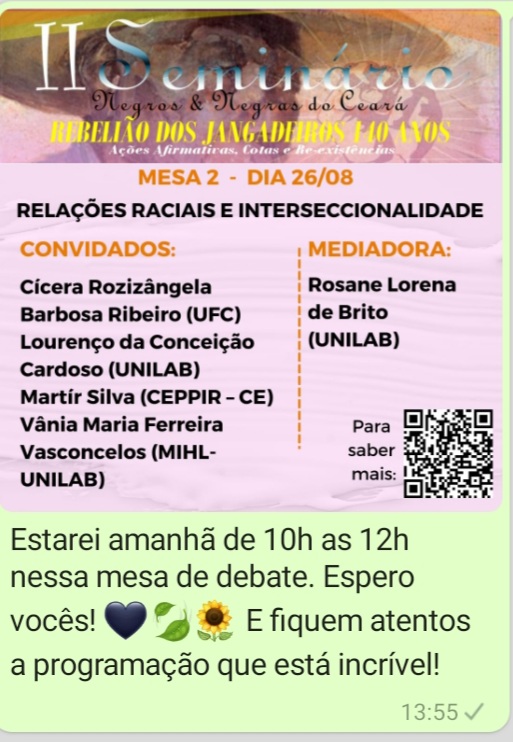 Compõe o grupo de pesquisadores do grupo de estudos Caldeirão] - Confluências Teorias Contra-Coloniais na História.