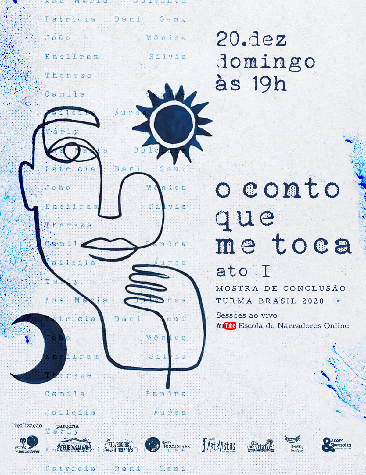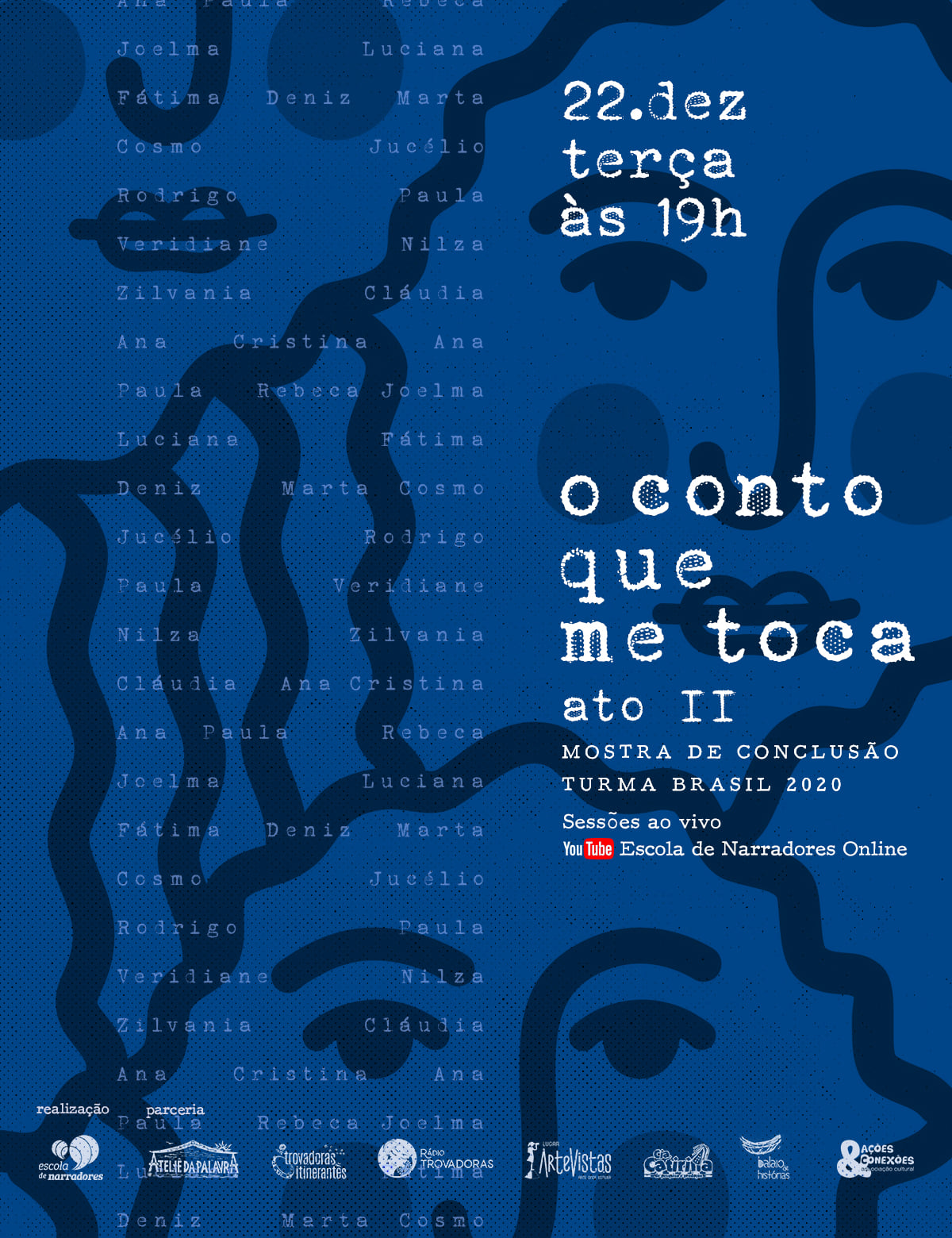 A partir de 2020, expandimos as nossas ações em formato online, alcançando três novas turmas (duas no Brasil e uma em Portugal), com mais 80 inscritos e um corpo docente especializado de cada país, além das atividades complementares que unem todas as turmas mensalmente com rodas de contos do mundo, ateliers e conversas com escritores somando 50 convidados e colaboradores.