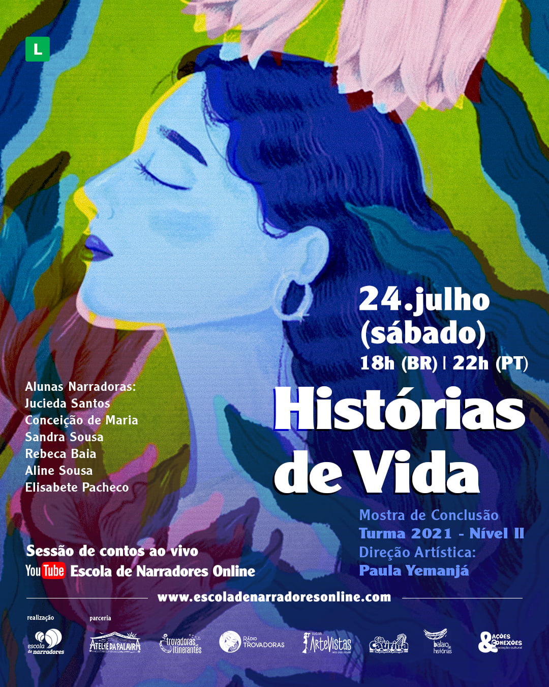 14 turmas formadas entre 2015-2022 | 140 concludentes do primeiro portal N1 | Três níveis de formação continuada (iniciação, intermediária e avançada) | 100 profissionais da palavra envolvidos entre corpo docente e convidados de 3 continentes | 3 novas turmas em andamento anualmente | Atividades complementares com a participação de 50 convidados e colaboradores ibero-americanos por ano | Residências artísticas, intercâmbios e estágios com os alunos do N3, artistas e mestres no Brasil e em Portugal | Participação de alunos e professores em eventos literários e de narração oral internacionais | Realização do encontro internacional de contadores de histórias: Cordão de Histórias (Brasil-Portugal) | Incentivo à lançamentos literários de alunos e professores | Material didático personalizado com livro-guias digitais.