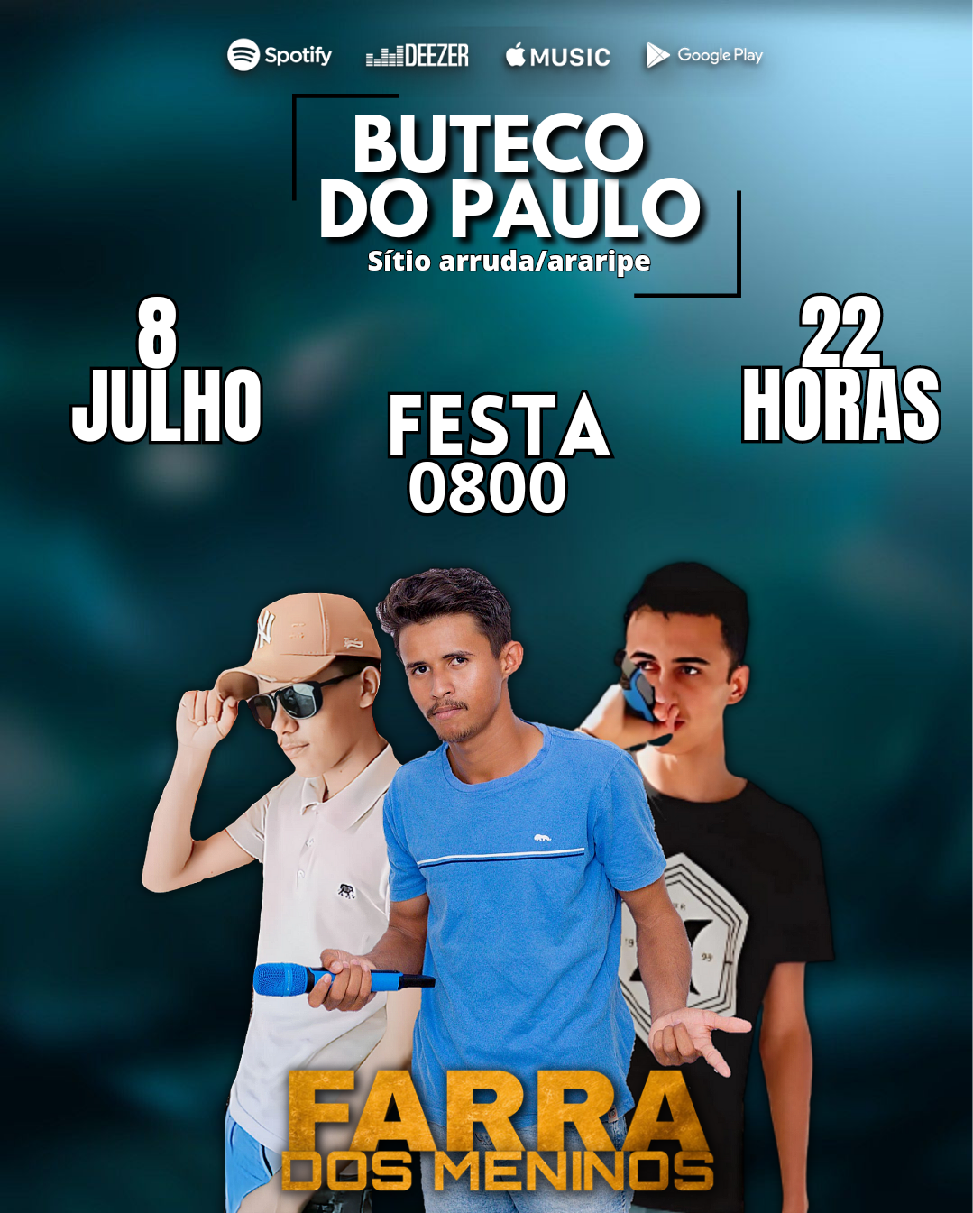 Individual Paulo Henrique de Almeida souza Área de Atuação Música Funções Músico-Musicista Descrição curta Banda farra dos meninos, banda salitrense na estrada levando o melhor do piseiro da atualidade, com repertório mais atualizado do momento, sempre levando nosso energia ao nosso público. REDES SOCIAIS Sobre Responsáveis Agenda Dados Pessoais E-mail Público: Ha4437463@gmail.com Telefone Público: (87) 98161-3856 Galeria eventos entre e Baixar Planilha Denunciar Contato Nome: E-mail: Tipo: Mensagem: Denúncia anônima Receber cópia da denúncia Cancelar Enviar Denúncia Enviando mensagem Nome: E-mail: Tipo: Mensagem: Mensagem anônima Enviar somente para o Responsável Receber cópia da mensagem Cancelar Enviar mensagem Enviando mensagem
