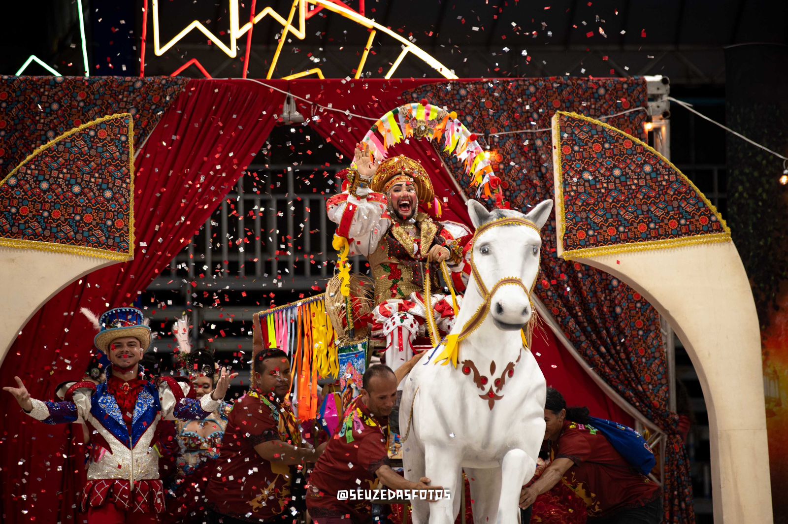 popular nordestina, representando uma combinação única de humor, crítica social e celebração das tradições. Desde a presença marcante nos circos itinerantes até sua atuação nos festejos populares, como o Cavalo-Marinho, o Bumba-Meu-Boi, Pastoril, Reisado e outros autos, o palhaço desempenha o papel de mediador entre o riso e a reflexão, entre o sagrado e o profano. Este enredo busca resgatar as raízes dessa figura no contexto nordestino, evidenciando como o palhaço reflete ocotidiano do povo e expressa, por meio de sua irreverência, as alegrias, dificuldades e resiliência de uma cultura rica e diversa. Ao explorar sua influência nos folguedos, danças e narrativas populares, o projeto