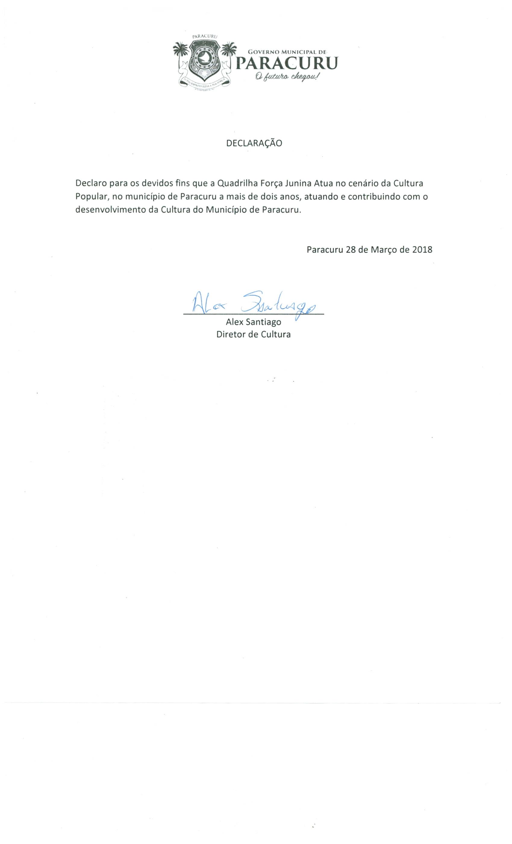 A Quadrilha Força Junina foi fundada em Novembro de 2009 no distrito de São Pedro – Paracuru – CE, com objetivo de promover, revitalização e resgate da cultura junina no município, vale do Curu e região metropolitana de Fortaleza.