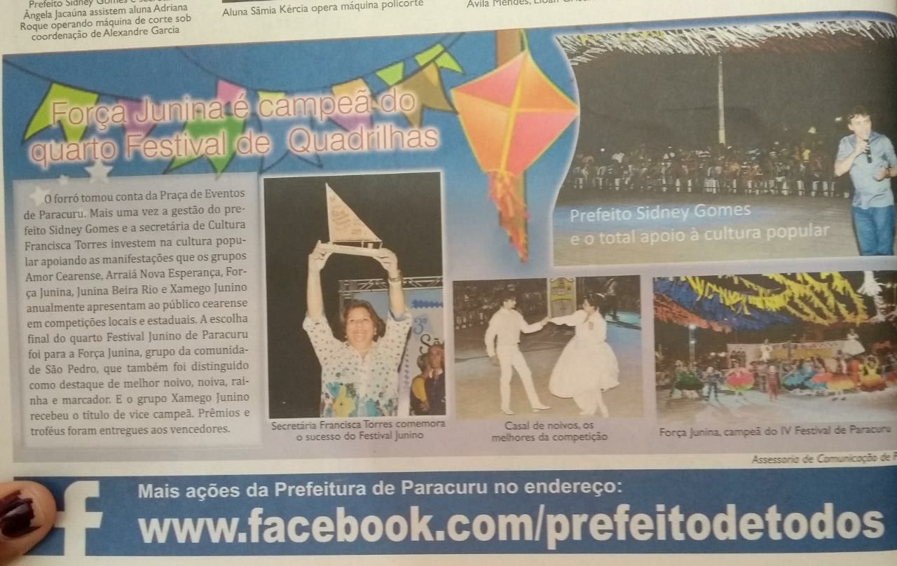 A trajetória de conquistas da Quadrilha Força Junina é apreciável, pois em apenas 12 anos de existência detêm seguintes títulos: Tricampeã circuito Sesc ativo, Hexacampeã municipal, Vice-campeã da etapa Ceara Junino e dentro outro...