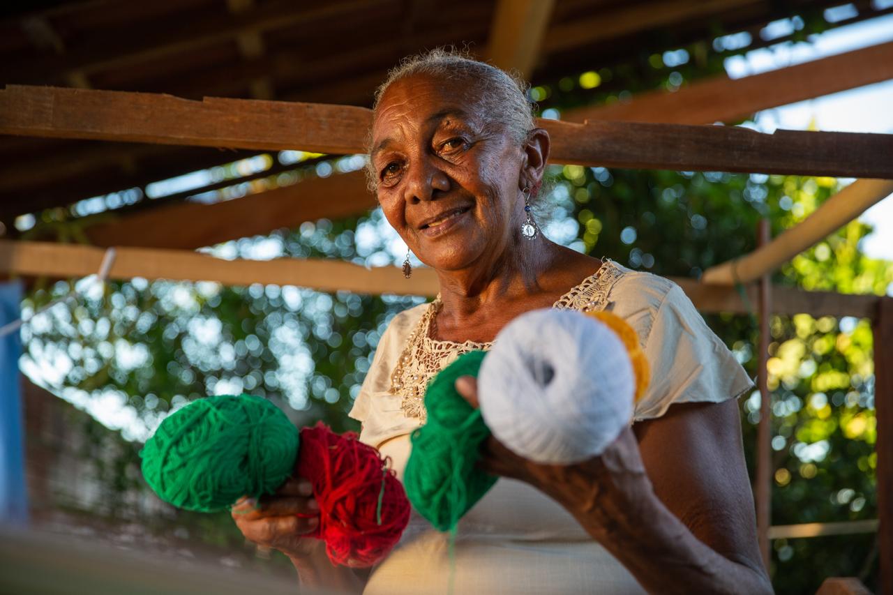 Em seu quarto, transformado em um acolhedor ateliê, Dinha exibe com orgulho suas obra. Para ela, que domina a arte da tecelagem com maestria, nenhum processo é complicado: o tempo desvendou todos os segredos e aperfeiçoou suas técnicas.