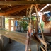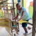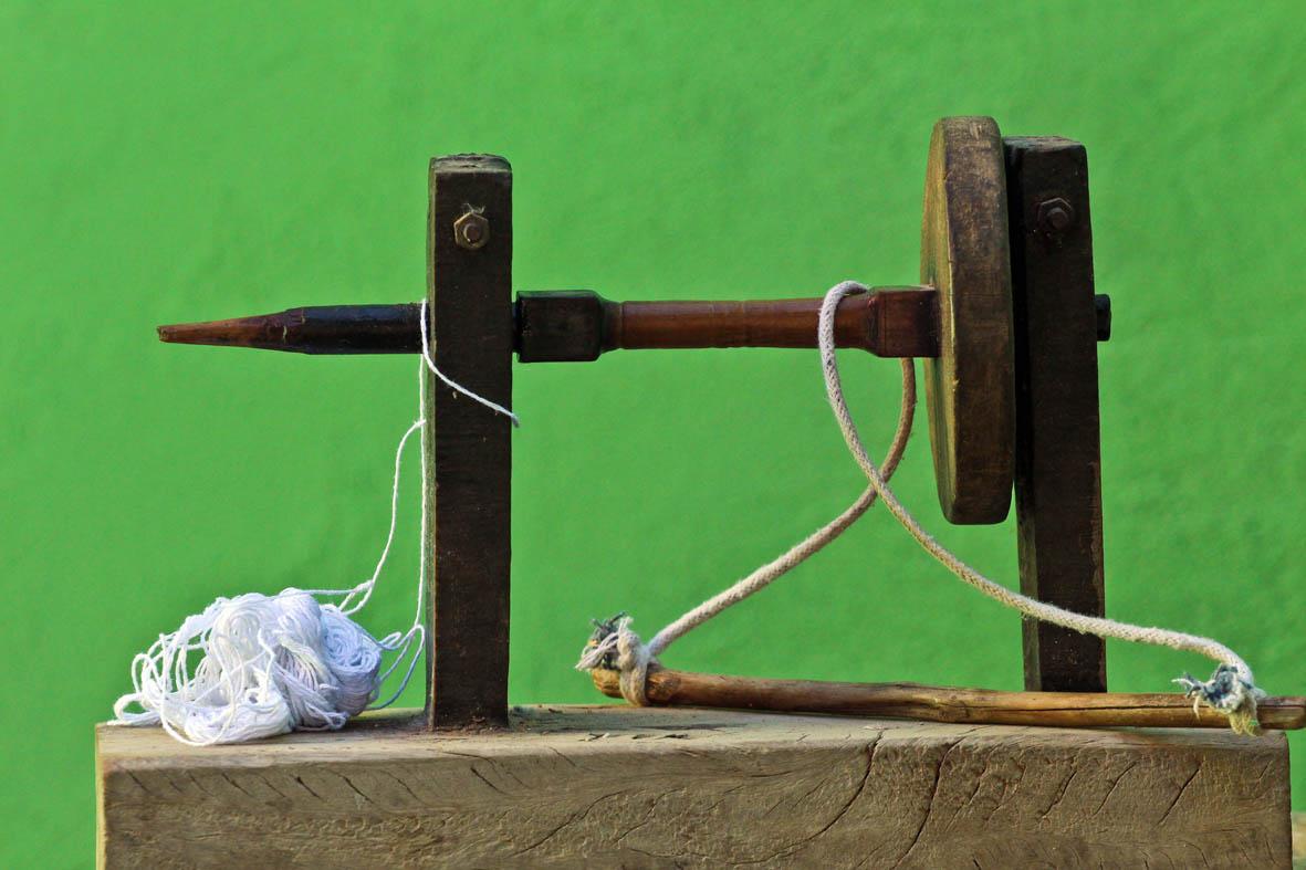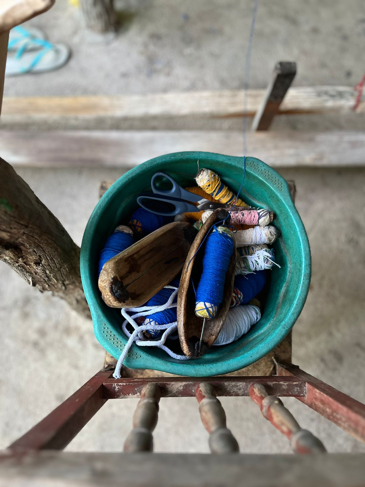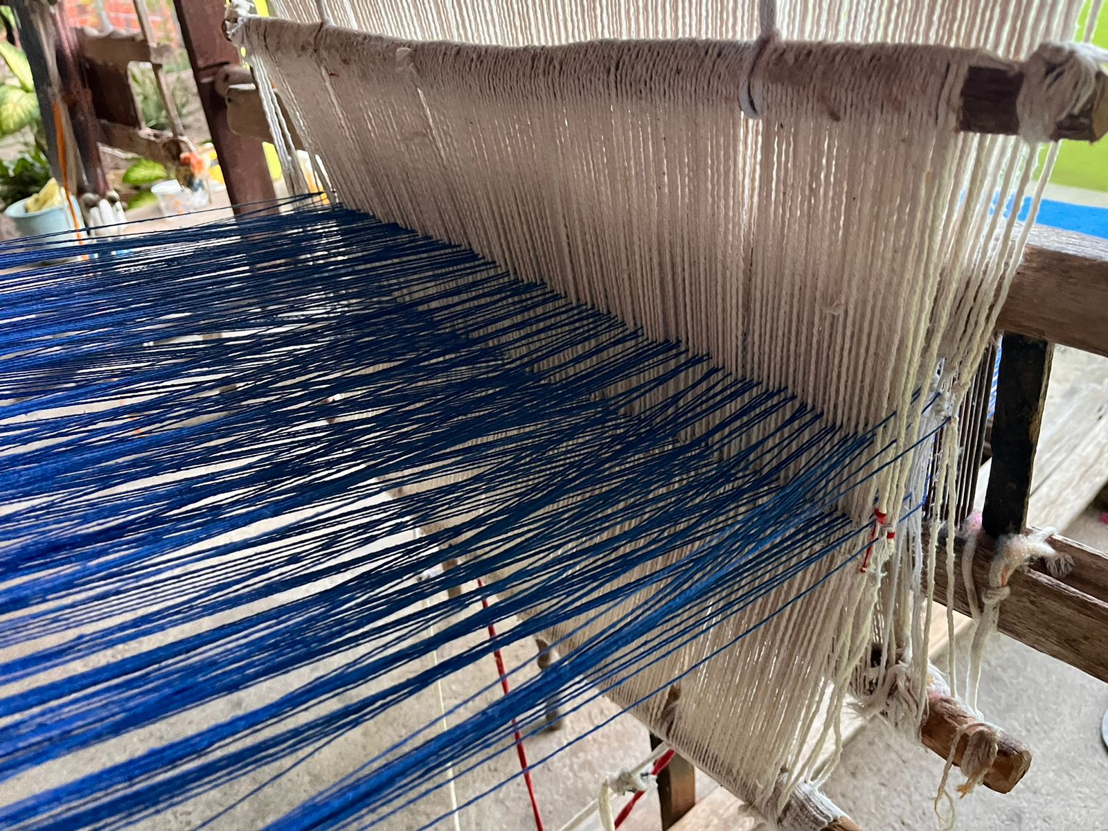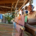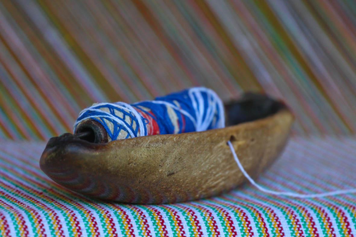 No quintal, repousam as partes do tear que tanto contribuíram para sua arte: liço, queixa, braço, orgo, pente, rasteira, cartel, canela e lançadeira. Com carinho e espontaneidade, Dinha brinca, afirmando que as madeiras de Ipê e Peroba Rosa que as compõem são mais antigas que suas próprias lembranças.