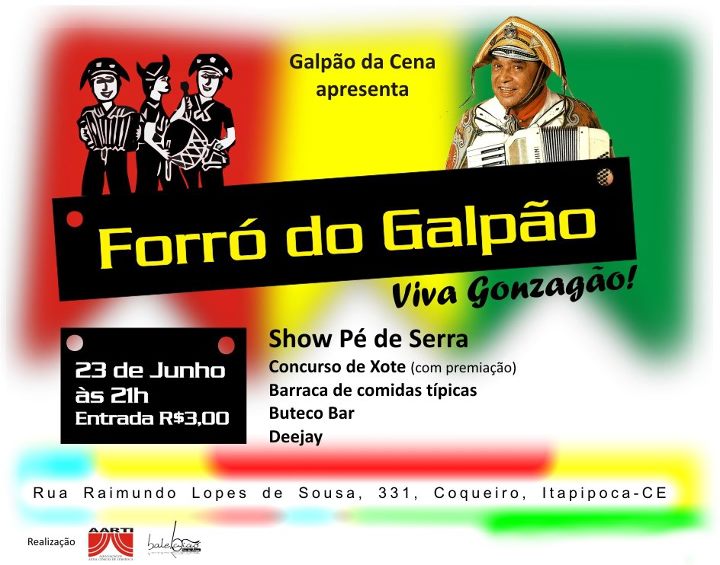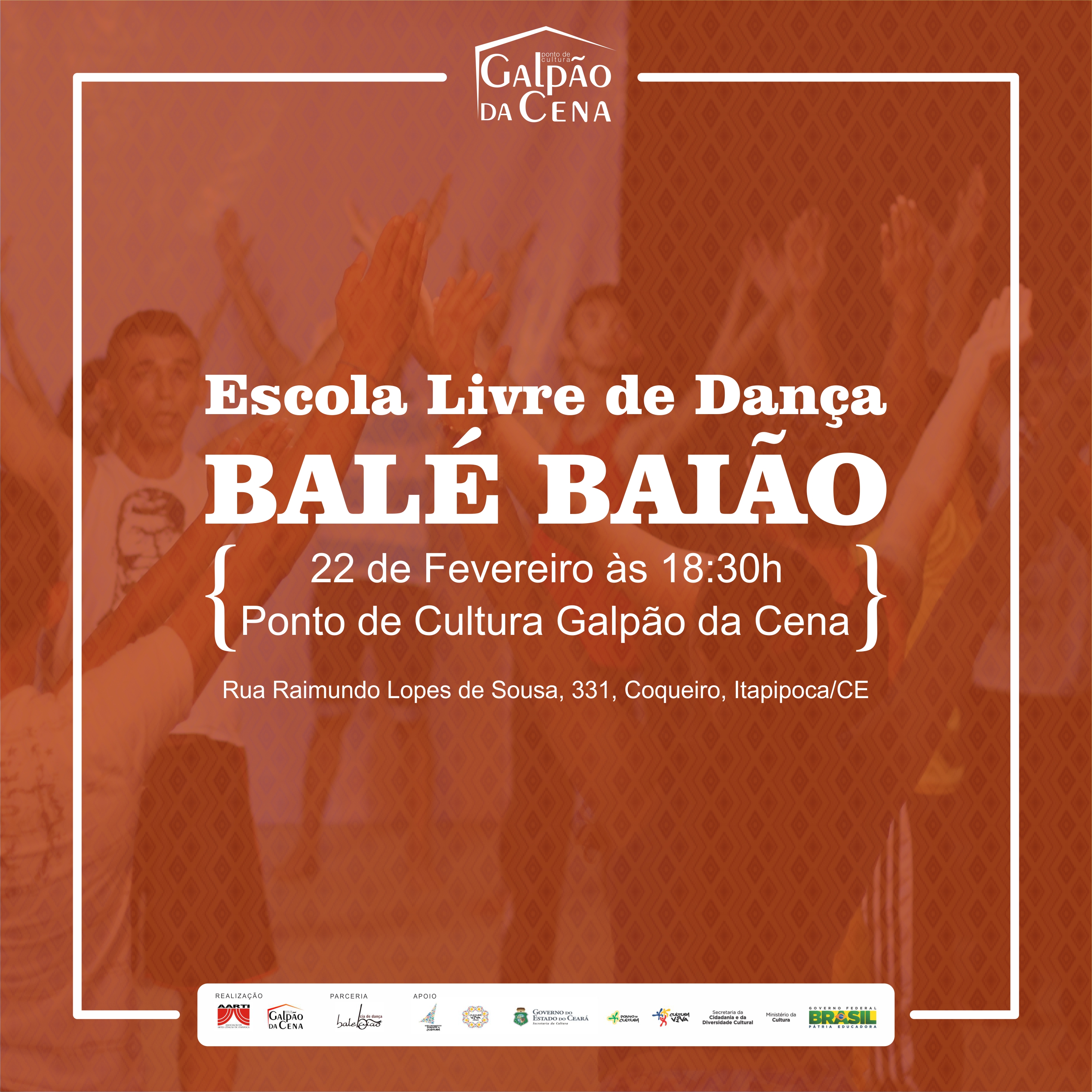 O Ponto de Cultura “Galpão da Cena”, antiga serraria do bairro Coqueiro, é atualmente a sede da Cia Balé Baião de Dança Contemporânea que atua em Itapipoca e Litoral Oeste desde 1997. Desde 2006 desenvolve um trabalho continuado de ensino, pesquisa, produção e circulação de dança, percussão afro e vídeoDança, através da Escola livre de dança Balé Baião, do Núcleo Advento de Audiovisual e do Grupo de Percussão Tambores Afro baião, núcleos de formação permanentes formados por adolescentes, jovens e adultos de cinco bairros periféricos da cidade. No galpão é oferecido semanalmente para 80 adolescentes e jovens entre 14 e 24 anos, aulas de diversas técnicas de dança cênica, desde a contemporânea à afro-brasileira, oficinas de vídeo-arte, palestras, debates sobre temas emergentes e mostra aberta de filmes de arte, espetáculos e performances com a participação de grupos locais e de outras cidades da região. Todas essas ações são ministradas e coordenadas voluntariamente pelos professores e pedagogos da Cia Balé Baião de Dança Contemporânea. Almejamos com o Ponto de Cultura ampliar essas ações, desde o investimento em material didático necessário até a capacitação técnica de nossos educadores. Com isso pretende-se fornecer para nossos jovens, famílias e bairros assistidos: formação sócio-artístico-cultural, resgate e fortalecimento das manifestações populares e étnicas, apreciação artística com o acesso às mostras permanentes, e preparação técnica para o mercado de trabalho através de cursos continuados.