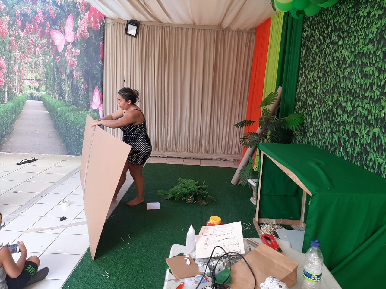 atividade sobre o uso consciente de agua com apresentação do teatro de fantoches para as crianças do residencial.