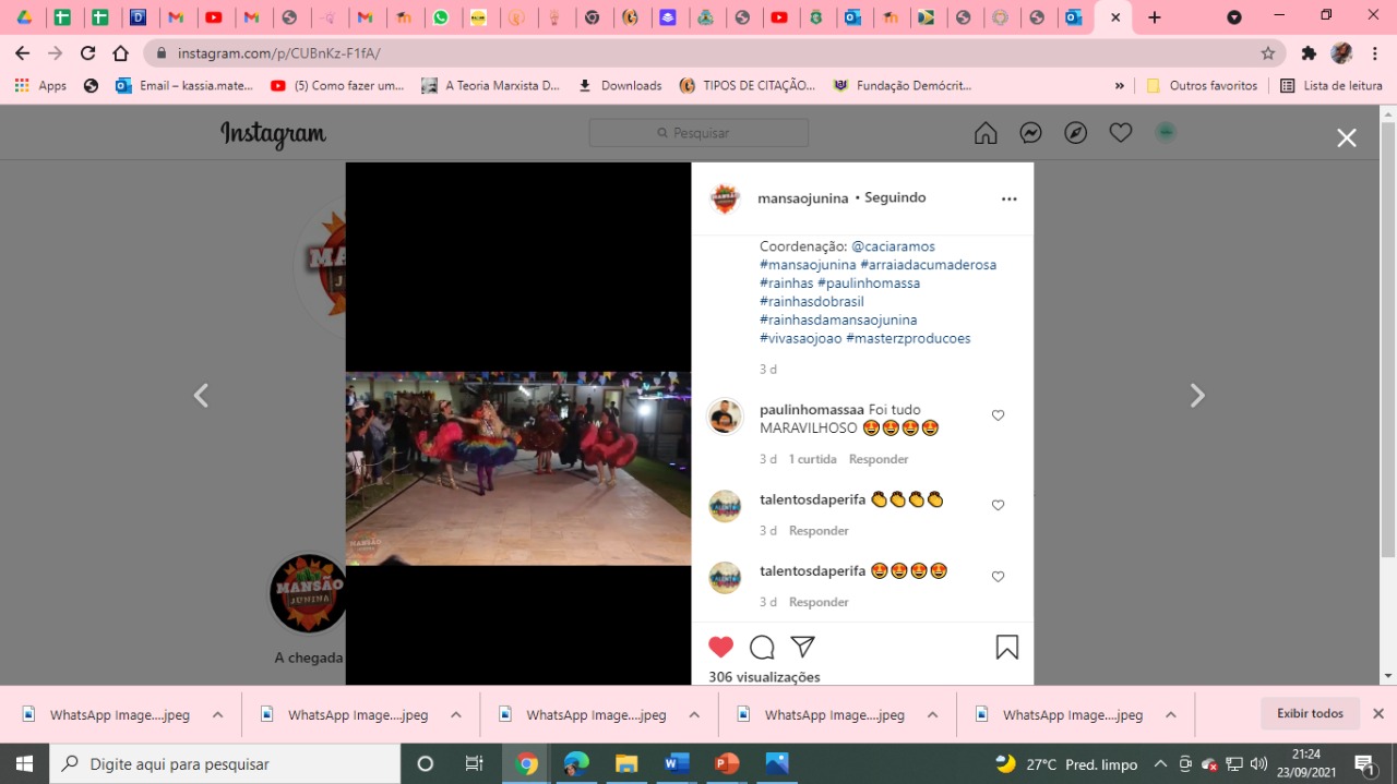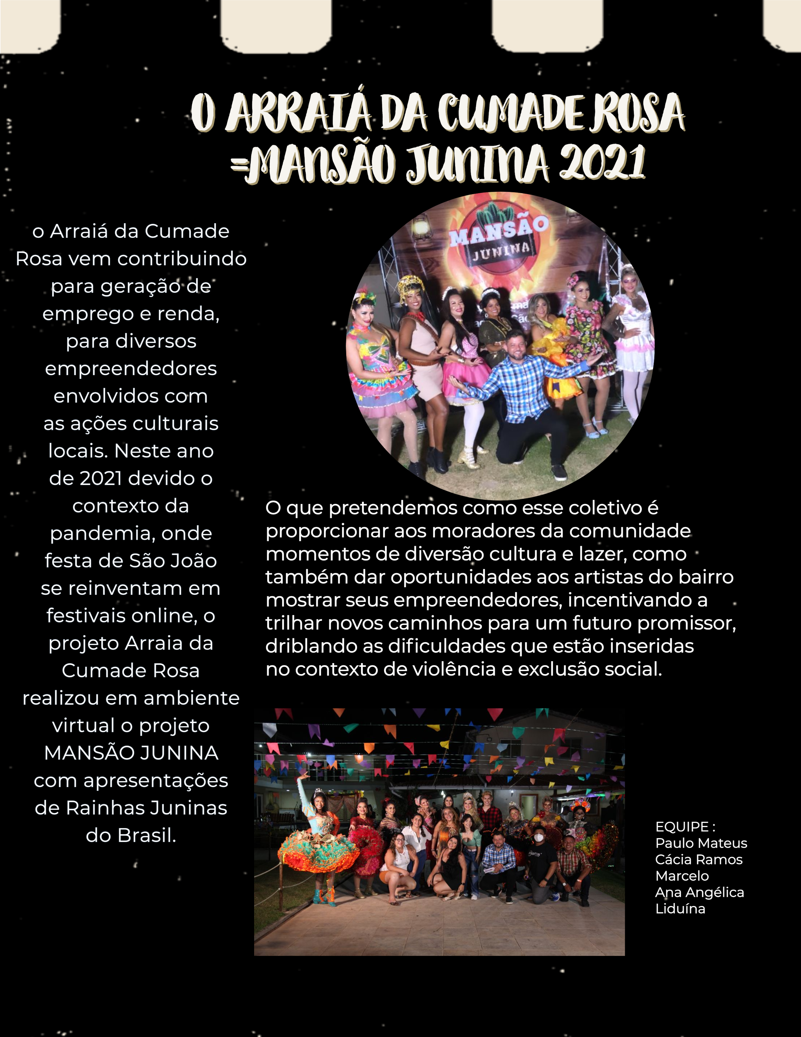 Participou ativamente do "Projeto Mansão Junina". Produção em eventos