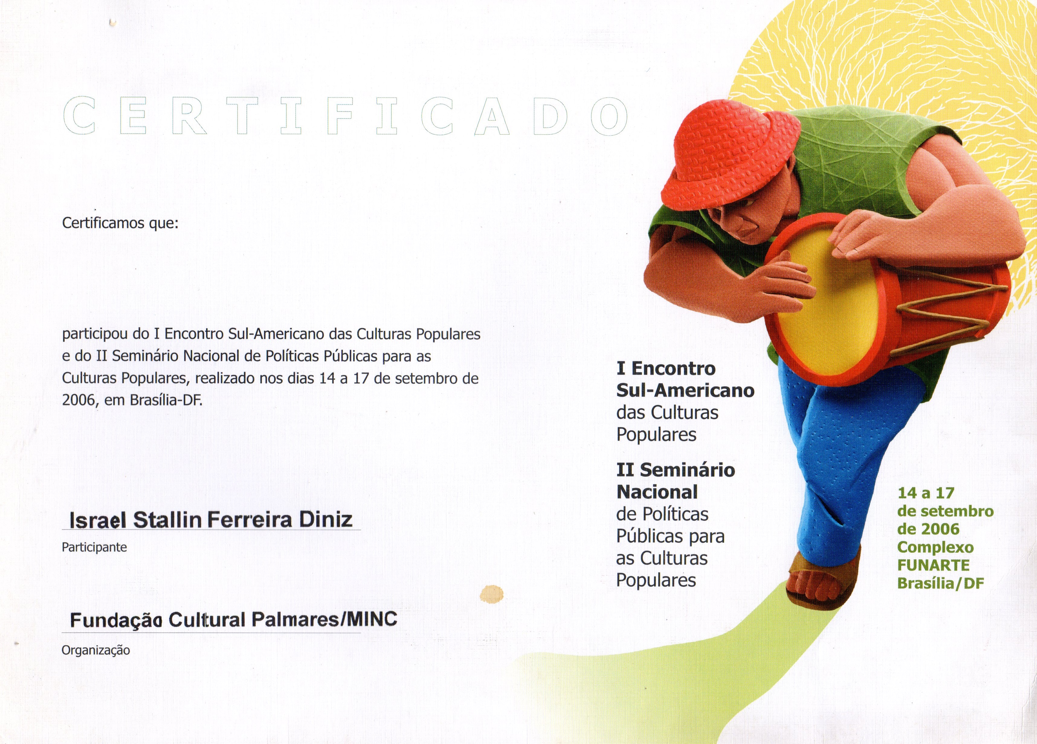 Em 2006 a 2008, faz o curso de reciclagem durante 3 meses na Escola Nacional de Circo no Rio de Janeiro e realiza mais de 100 atividades culturais (oficinas de circo, oficinas de brinquedos populares e espetáculos) nos estados do Ceará, Bahia, Rio de Janeiro, Goiás e no Distrito Federal.