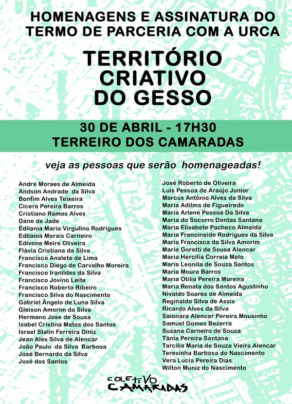 Em 2004, participa da criação da “União dos Artistas da Terra da Mãe de Deus”, sediada em Juazeiro do Norte-CE. Desenvolvendo oficinas de teatro, perna de pau, malabares, plantação de árvores frutíferas, flores e ervas medicinais, organização de cooperativas e brincando no grupo de maneiro pau e Bacamarteiros Beato José Lourenço.