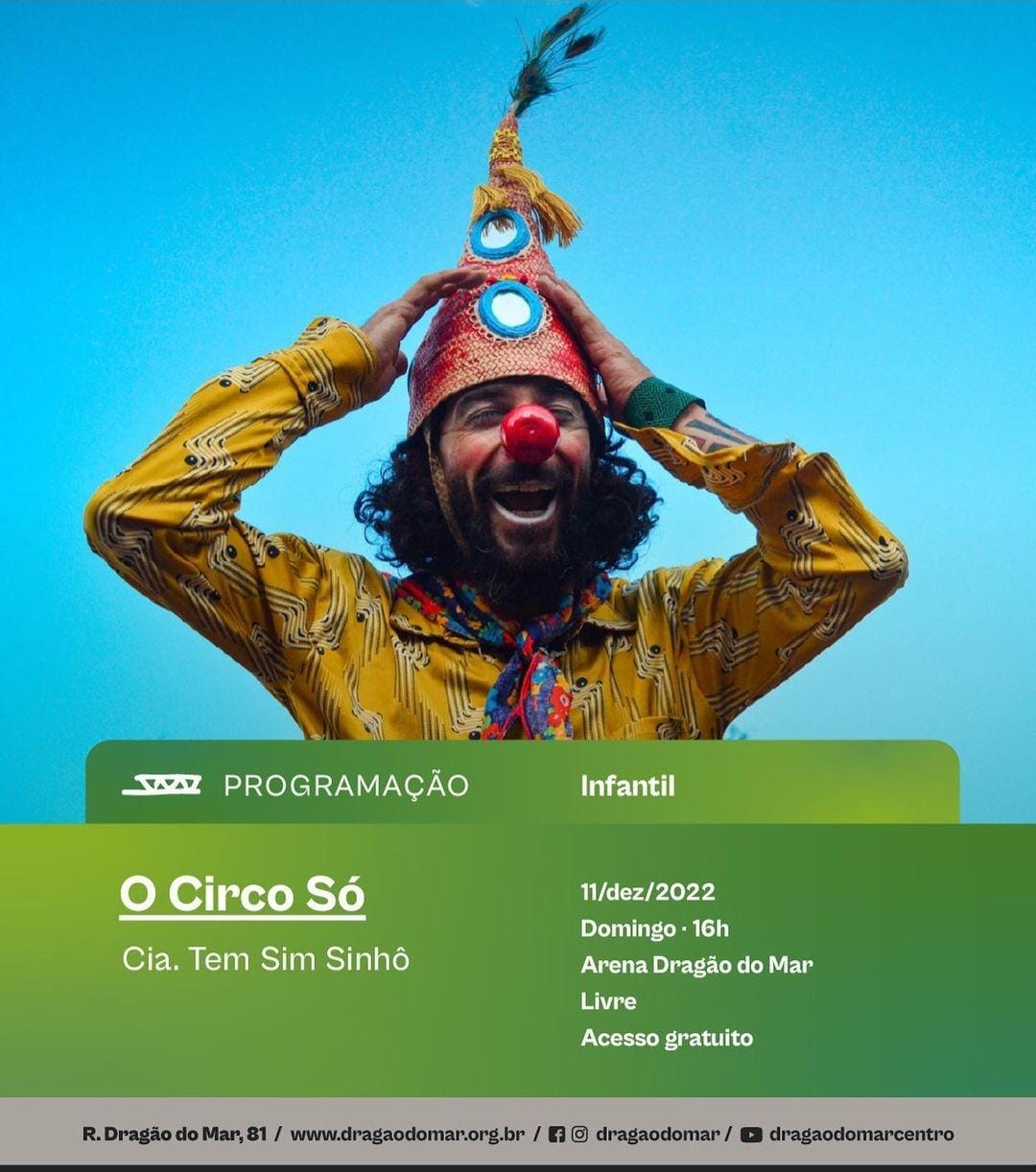 Em 2022, participa do 15º Encontro Goiano de Malabares e Circo em Goiânia; Realiza a produção do 11º Encontro de Palhaços e Circo em Anápolis, de forma híbrido, com atividades presenciais e online, realizando: espetáculos, rodas de prosa, show musical com Forró de Palhaç@s e uma web série com 10 episódios; participa da 9º Caminhada pela Inclusão, das pessoas com deficiências no mês de conscientização do Autismo em Anápolis; Apresentação do espetáculo “O Circo Só” no III FIMC – Festival Internacional de Mascaras do Cariri em Crato-CE; Participação no Cortejo da Festa do Pau da Bandeira de Santo Antônio em Barbalha-CE; Apresentações de rua na Praia de Iracema em Fortaleza-CE; Palhaceata e Apresentação do espetáculo “O Circo Só” no Festival Brasileirado de ocupação do Teatro Goiânia em Goiás; Apresentação do espetáculo “O Circo Só” no VI Encontro de Saberes da caatinga em Exu-PE; Participação no cortejo de aniversário de 3 anos do museu orgânico mestre Nena em Juazeiro do Norte-CE; Apresentações e realizações de vivencias circenses na Praça do CC, no Bairro João Cabral em Juazeiro do Norte-CE; Participação no cortejo cultural de abertura da 12º Mostra Cariri de Culturas em Juazeiro do Norte-CE; Oficina de brinquedos populares e apresentação do espetáculo “ O Circo só” no CCBNB – Centro Cultural Banco do Nordeste em Fortaleza; Participa do Circuito SP – Amigos da arte SP, apresentando nas cidades de Santa Barbara do Oeste, Pereira Barreto, Pederneiras e Nova Europa no estado de São Paulo; Apresentação na Associação Flor da Vida em Franca-SP; Apresentação em comemoração ao dia das crianças em Iracemápolis-SP; Apresentação em comemoração ao dia das crianças no Acampamento do MST Marielle Vive – Valinhos-SP; Apresentação no Circo do Beco na vila Madalena em São Paulo-SP; Apresentação na Feira CriaSana em Sana-RJ; Apresentação no Circo de Areia em Macáe-RJ; Apresentação no Centro Cultural Dragão do Mar em Fortaleza-CE; Apresentação na Comunidade do Poço da Draga em Fortaleza-CE.