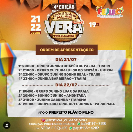 Ao longo de sua trajetória, tem participado da organização e produção de festivais de quadrilhas juninas e eventos culturais em diversos municípios do Ceará, contribuindo para o fortalecimento das expressões culturais populares e para a valorização das tradições culturais nos territórios. Desde 2019, atua também como avaliador de festivais de quadrilhas juninas, participando de processos de avaliação técnica e artística de grupos juninos em concursos e festivais culturais.