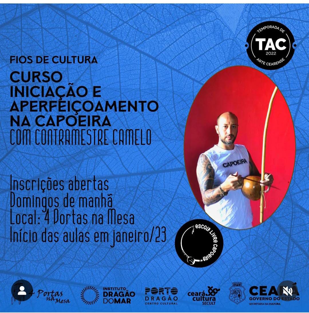 Contramestre Camelo capoeirista com mais de 23 anos de prática no ensino/aprendizagem da capoeira. Responsável pelo trabalho da Escola Livre Capoeira em Sobral. Desenvolve um trabalho com capoeira e suas manifestações artísticos - culturais no Largos das Dores a mais de 15 anos ocupando o local com treinos e práticas de ensino - aprendizagem da capoeira. Realiza também trabalho de capoeira na Casa 4Portas e um dos responsáveis do coletivo cultural de capoeira que realiza a gestão e a produção do Ponto de Cultura Capoeira Sobral. um dos membros fundadores da Liga Sobralense de Capoeira sendo Vice presidente da entidade e participante do Fórum da Capoeira Sobralense sendo um dos idealizadores. Capoeirista e competidor tendo participação em varias competições a nível nacional como competidor e como jurado.Vídeos