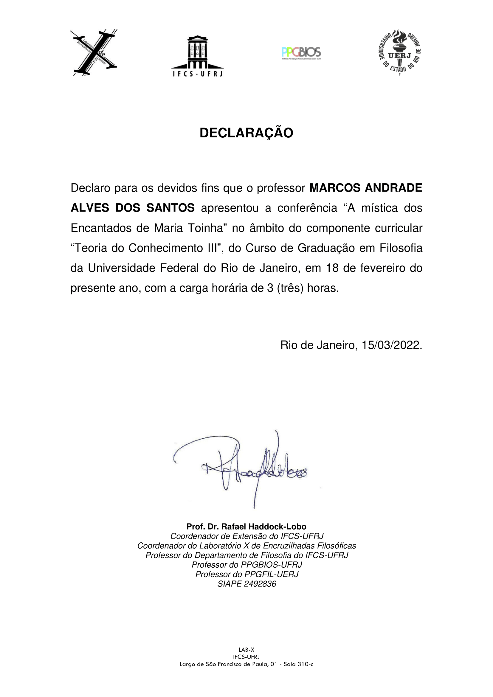 Aula aberta A Mística dos Encantados de Maria Toinha - Marcos Andrade na UFRJ