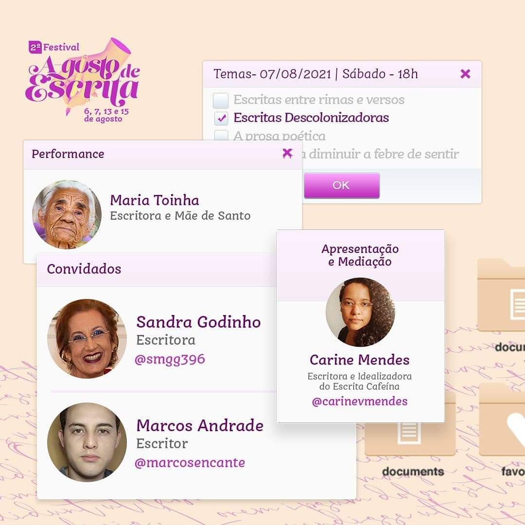 Coordeno o Projeto Literário A Mística dos Encantados, tecido a partir das experiências da minha avó, Mestra Maria Toinha, como mulher negra e mãe de santo Umbandista.