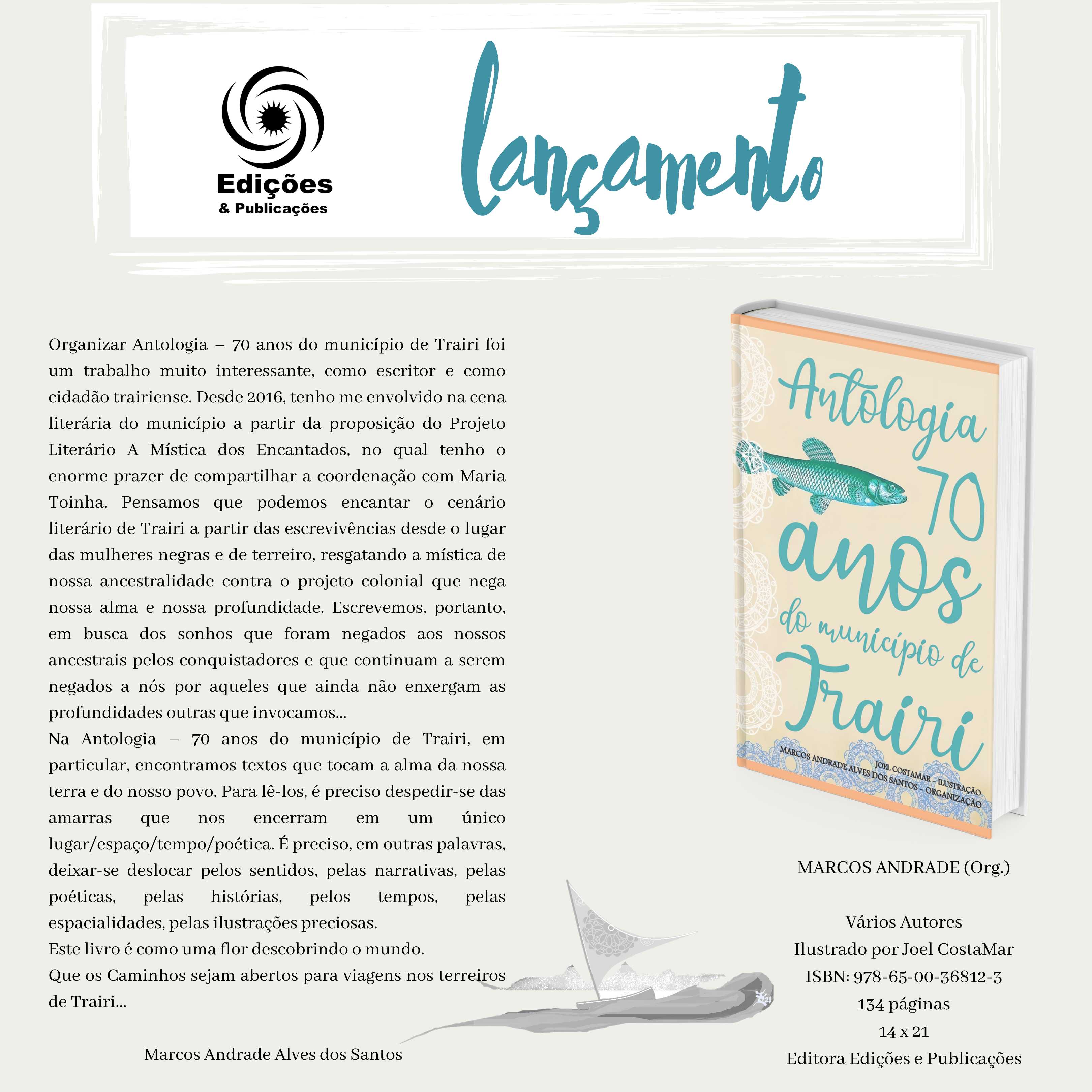 Integro o Conselho Editorial da Editora Edições e Publicações, pela qual organizei os livros: Devires Poéticos (2020), Antologia 70 anos do município de Trairi (2021) e Narrativas de Terreiro: memórias, estórias e pesquisas sobre as religiões afro-indígenas no Ceará (2025).