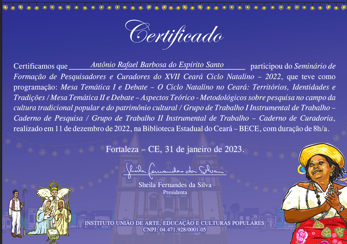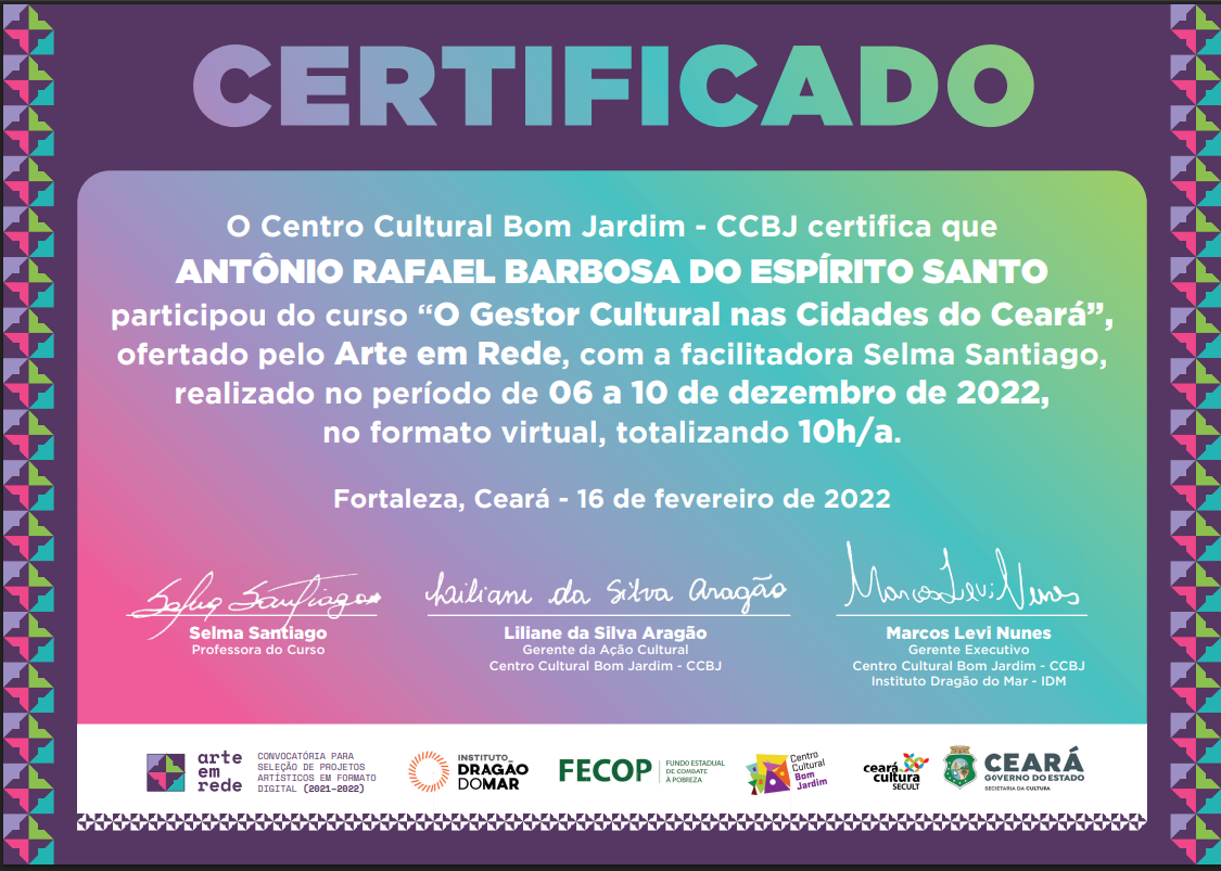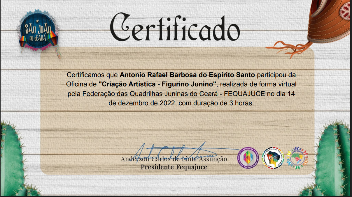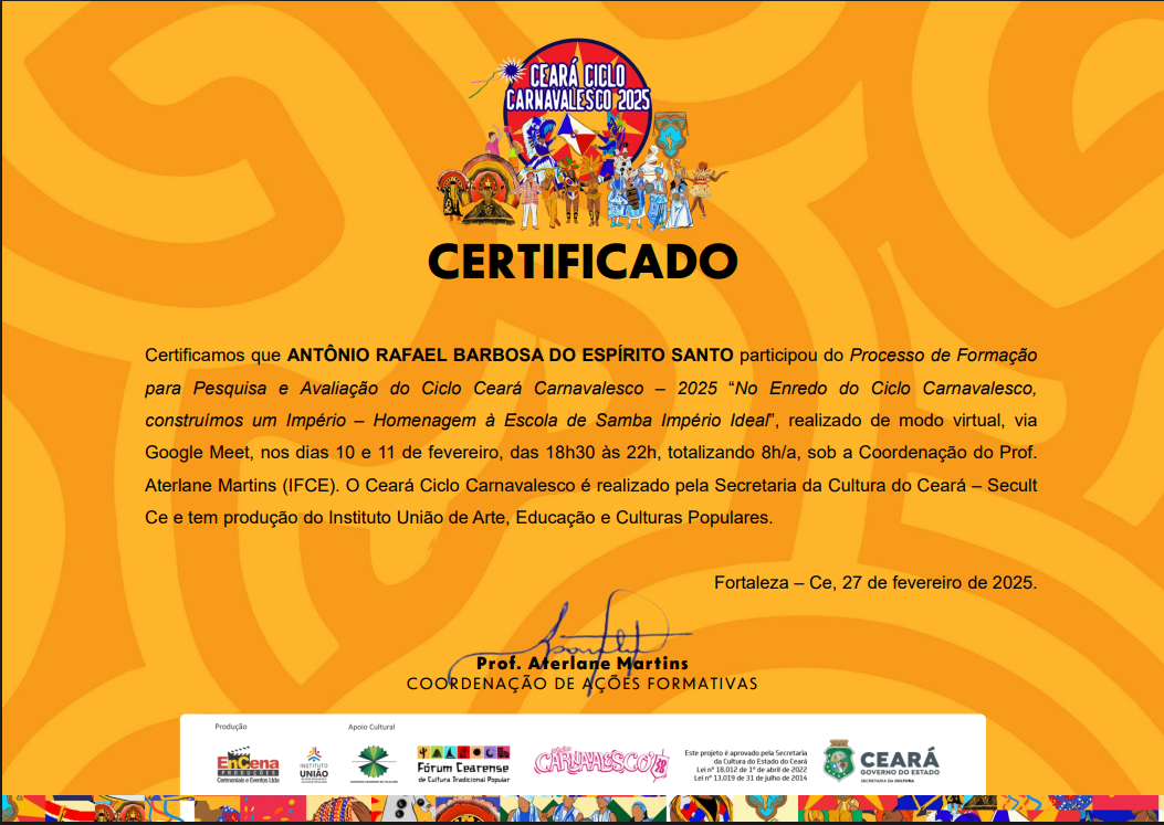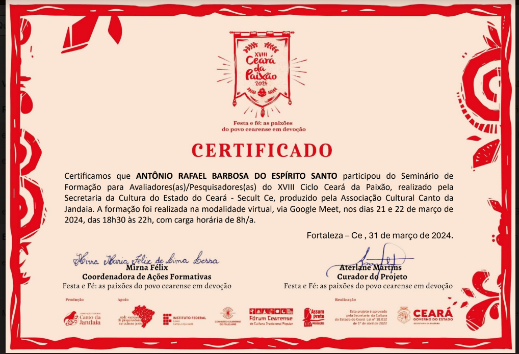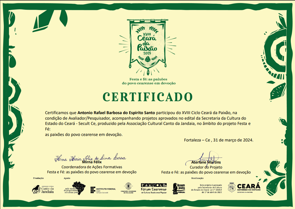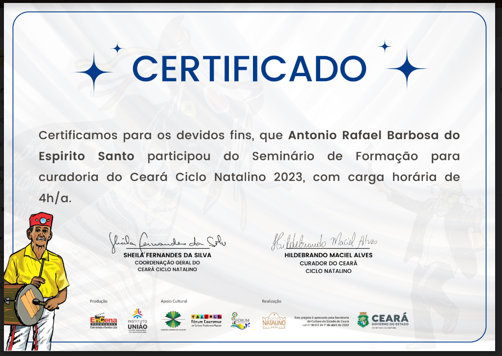 Selos Aplicados Selos Disponíveis {{seal.name}} {{relation.seal.name}} Não expira Expira em: {{relation.validateDate}} Expirou em: {{relation.validateDate}} Solicitar renovação Renovação Solicitada Renovar selo Compartilhar Tweet Adicionar agentes {{group.name}} {{relation.agent.name}} Aguardando confirmação. Área de Atuação: {{area}}, tipo: {{relation.agent.type.name}} Permitir editar: {{relation.hasControl ? 'Sim' : 'Não' }} Excluir Grupos que participa group-admin em CORRIGENDA EDITAL CHAMAMENTO PÚBLICO Nº 003/2024 EM APOIO ÀS MULTILINGUAGENS CULTURAIS DE BARBALHA - CE group-admin em EDITAL DE FOMENTO A AÇÕES CULTURAIS - POLÍTICA NACIONAL ALDIR BLANC - BARBALHA - EDITAL Nº 07/2024 CARNAVAL TRADICIONAL DE BARBALHA: HOMENAGEM AO MESTRE FANIQUIM. group-admin em EDITAL 01/2025 DE FOMENTO AS AÇÕES CULTURAIS - POLÍTICA NACIONAL ALDIR BLANC - CARNAVAL CULTURAL DE BARBALHA-CE. group-admin em EDITAL Nº 02/2025 -SEMANA SANTA 2025 EM BARBALHA-CE, FOMENTO A AÇÕES CULTURAIS - POLÍTICA NACIONAL ALDIR BLANC. group-admin em INSCRIÇÃO - ETAPA CEARÁ JUNINO SERTÃO CENTRAL 2025 - Maravilha Junino. group-admin em INSCRIÇÃO - ETAPA CEARÁ JUNINO SERTÃO CENTRAL 2025 - Maravilha Junino. group-admin em EDITAL 02/2025 PARA SELEÇÃO DE AVALIADORES DO 9º FESTIVAL DE QUADRILHAS MARAVILHA JUNINO 2025 - UMA MARAVILHA DE SÃO JOÃO. group-admin em group-admin em group-admin em group-admin em Associação Comunitária de Juventude Arte e Cultura Chapéu de Palha - ACJACCP group-admin em Associação Comunitária de Juventude Arte e Cultura Chapéu de Palha - ACJACCP group-admin em group-admin em group-admin em group-admin em RB CONSULTORIA group-admin em group-admin em group-admin em group-admin em group-admin em group-admin em group-admin em Instituto Jovens Rurais do Brasil group-admin em Downloads Participaçaõ Participação Participação 3 Participação 3 curriculo cultural Certificado pesquisador 2022 Certificado Gestor Cultural Pesquisador 2018 antonio_rafael_barbosa_do_espirito_santo_(1).pdf antônio_rafael_barbosa_do_espirito_santo.pdf antônio_rafael_barbosa_do_espirito_santo-2.pdf carnval_declaração.pdf antônio_rafael_barbosa_do_espírito_santo_(1).pdf Certificado Teatralidade Musicalidade Marcador Casamento Junino Musicalidade Figurino Junino Pesquisador Natal 2023 Currículo Cultural CERTIFICADO Seminário de Participação PAIXÃO DE CRISTO Certificado AVALIADOR PESQUISADOR CEARÁ DA PAIXÃO 2024 CERTIFICADO - PESQUISADOR CURADOR CEARÁ DA PAIXÃO 2024 PORTIFOLIO RAFAEL BARBOSA CERTIFICADO Curso Livre de Produção Audiovisual CURRICULO ATUALIZADO CERTIFICADO CEARÁ CARNAVALESCO 2025 AVALIADOR - PESQUISADOR CARNAVAL Curso Capacitação de Agentes Culturais Curso de Formação Inicial e Continuada (FIC) em Analista e Parecerista de Projetos Culturais, CURSO DE AGENTE CULTURAL Histórico 25/10/2025 Registro atualizado. [10:51:06] Registro atualizado. [10:47:25] Registro atualizado. [10:39:46] 18/09/2025 Registro atualizado. [17:48:22] 13/09/2025 Registro atualizado. [19:50:59] 21/07/2025 Registro atualizado. [11:32:51] Registro atualizado. [10:42:55] 20/07/2025 Registro atualizado. [15:12:26] Registro atualizado. [15:12:26] Registro atualizado. [15:08:11] Registro atualizado. [15:08:11] Registro atualizado. [15:07:28] Registro atualizado. [15:07:27] Registro atualizado. [15:05:25] Registro atualizado. [15:05:25] Registro atualizado. [15:04:11] Registro atualizado. [15:04:10] Registro atualizado. [14:12:28] Registro atualizado. [14:12:28] Registro atualizado. [14:10:36] Registro atualizado. [14:10:36] Registro atualizado. [14:09:14] Registro atualizado. [14:09:14] Registro atualizado. [14:08:16] Registro atualizado. [14:08:15] 18/07/2025 Registro atualizado. [10:00:29] Registro atualizado. [10:00:29] Registro atualizado. [09:58:17] Registro atualizado. [09:58:16] Registro atualizado. [09:56:26] Registro atualizado. [09:56:26] Registro atualizado. [09:56:26] 08/07/2025 Registro atualizado. [19:42:07] Registro atualizado. [19:42:07] Registro atualizado. [19:38:45] Registro atualizado. [19:38:45] Registro atualizado. [19:37:36] Registro atualizado. [19:37:36] Registro atualizado. [19:35:20] Registro atualizado. [19:35:19] Registro atualizado. [19:33:57] Registro atualizado. [19:33:56] Registro atualizado. [19:32:42] Registro atualizado. [19:32:41] 07/07/2025 Registro atualizado. [19:39:23] Registro atualizado. [19:39:23] Registro atualizado. [19:38:23] Registro atualizado. [19:38:23] Registro atualizado. [19:37:41] Registro atualizado. [19:37:41] 06/07/2025 Registro atualizado. [20:53:14] Registro atualizado. [20:53:14] Registro atualizado. [20:53:14] 02/07/2025 Registro atualizado. [08:31:07] Registro atualizado. [08:31:07] Registro atualizado. [08:27:36] Registro atualizado. [08:27:36] Registro atualizado. [08:25:40] Registro atualizado. [08:25:40] Registro atualizado. [08:25:39] 16/06/2025 Registro atualizado. [10:55:35] Registro atualizado. [10:55:35] Registro atualizado. [10:55:23] Registro atualizado. [10:55:23] Registro atualizado. [10:52:58] Registro atualizado. [10:52:58] Registro atualizado. [10:42:15] Registro atualizado. [10:42:15] Registro atualizado. [10:37:13] Registro atualizado. [10:37:13] Registro atualizado. [10:37:13] 22/05/2025 Registro atualizado. [20:34:47] Registro atualizado. [20:34:47] Registro atualizado. [20:25:34] Registro atualizado. [20:25:33] Registro atualizado. [20:22:36] Registro atualizado. [20:22:36] Registro atualizado. [05:39:43] Registro atualizado. [05:39:42] Registro atualizado. [05:39:12] Registro atualizado. [05:39:12] Registro atualizado. [05:39:12] 21/05/2025 Registro atualizado. [01:26:04] Registro atualizado. [01:26:04] Registro atualizado. [01:24:09] Registro atualizado. [01:24:09] Registro atualizado. [01:18:39] Registro atualizado. [01:18:39] Registro atualizado. [01:17:38] Registro atualizado. [01:17:38] Registro atualizado. [01:17:20] Registro atualizado. [01:17:20] Registro atualizado. [00:42:41] Registro atualizado