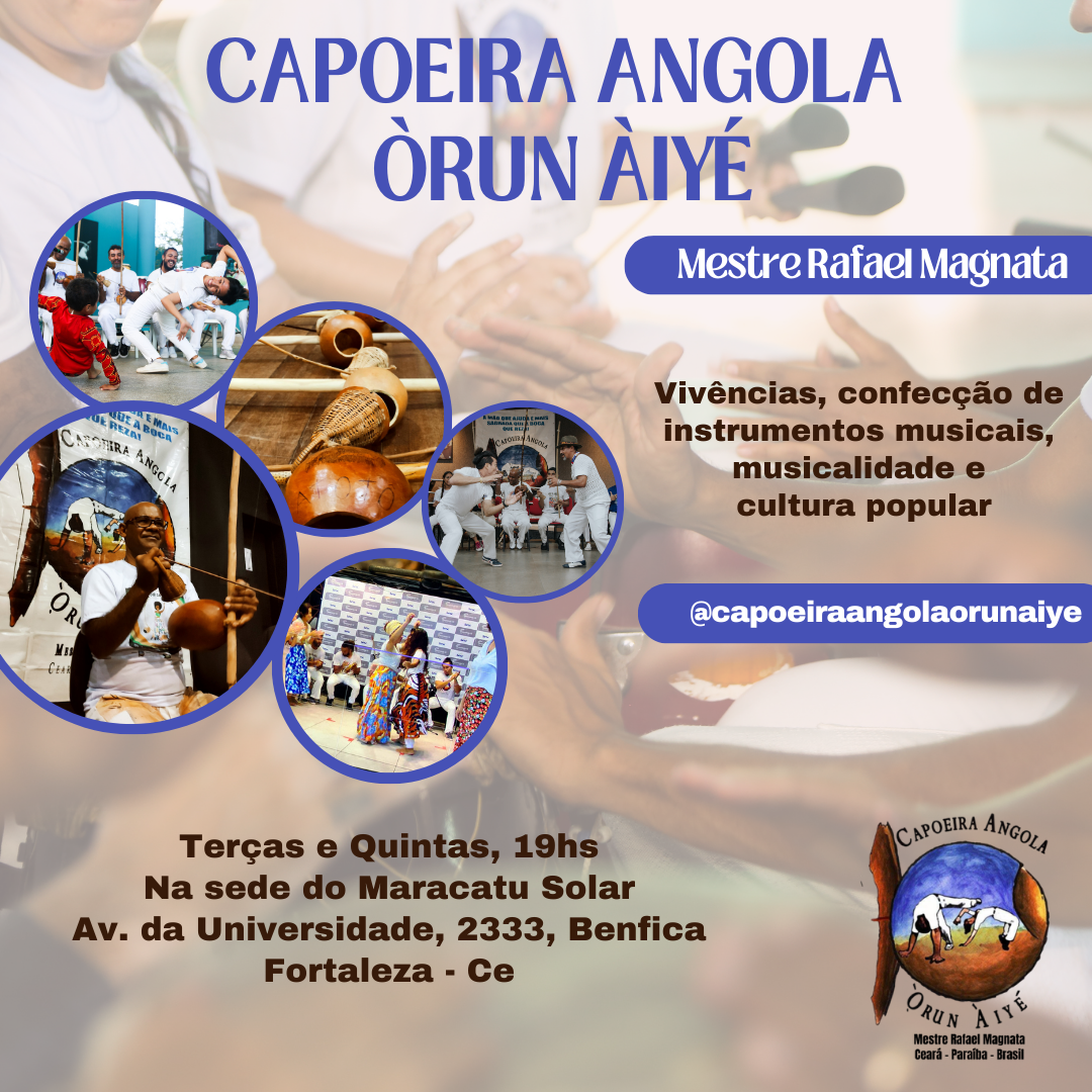 Realizamos, desde 2014 , o evento cultural “Minha Alma Canta Angola”, que oferece uma confluência de saberes-fazeres da musicalidade da capoeira, cultura popular e outras manifestações afro-populares. Já foram 6 edições realizadas, sendo a última em 2024. Sua última realização contou com a parceria do Hub Cultural Porto Dragão e Ponto de Cultura Ajeum de Oyá.