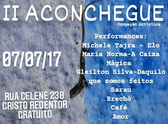 Através de encontros plurais, a Ocupação Artística Aconchegue fomenta desde 2017 a promoção da cultura popular ancestral e da arte urbana, remanescentes nas periferias as quais vivemos e ocupamos. É desenvolvida por produtoras culturais e artistas populares periféricas (os) que buscam construir vínculos e afetos, de modo intergeracional e multicultural. Podemos delinear que o nosso território de atuação se localiza na região oeste da cidade de Fortaleza, e é considerado um dos bairros que possuem os piores índices de IDH - 0,262132976, da capital cearense, ficando em 86º posição em relação ao indicador no Censo Demográfico realizado no ano de 2010. Considerando os aspectos socioambientais de ser um bairro situado em torno do Rio Maranguapinho, vale destacar que as ocupações no território em questão evidenciaram os contrastes habitacionais na cidade, gerando um cenário contraditório entre ocupação e devastação. O processo em questão mostrou as disparidades na promoção e no acesso às Políticas Sociais essenciais a garantia dos direitos humanos ali. É nesse cenário que se desenvolve desde agosto de 2019 a Ocupação Cultural Aconchegue, espaço de atuação artístico cultural, que através de atividades pedagógicas busca fomentar o resgate da História Oral sobre o território, através de rodas de conversa, produção de lambe-lambe, ciclo de poesias, entre outras ações realizadas com as populações tradicionais do bairro e bairros vizinhos. Sabemos que mesmo com o surgimento de moradias às margens dos centros urbanos e com o apagamento da sua existência pelo poder público, não impediram a criação de movimentos que utilizam a arte como principal ferramenta de resistência e de luta pelo Direito à Cidade, sobrepondo-se à lógica eurocêntrica que considera a periferia um tecido social sem identidade própria.
