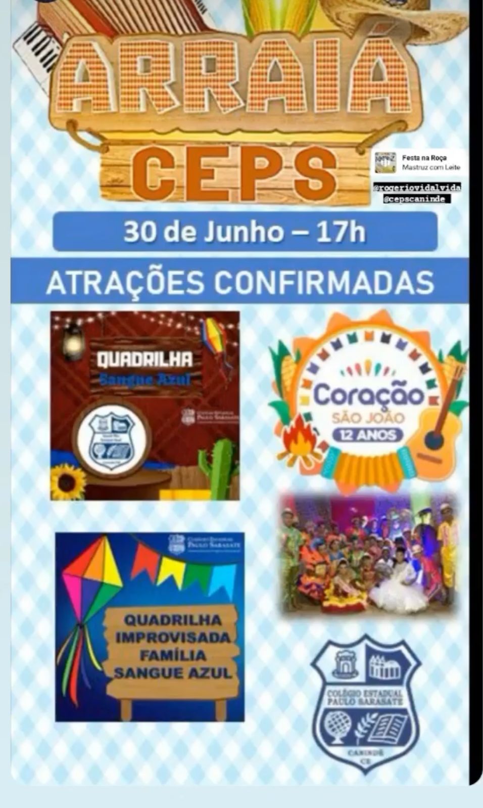 Quadrilha junina infantil fundada no ano de 2011 na zona rural de Canindé, no distrito de Iguaçu, com o objetivo de proporcionar acesso a cultura, conhecimento e arte a população rural do município de Canindé.Vídeos
