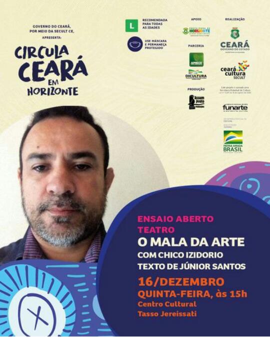 Ator e diretor do espetáculo "O mala da arte", apresentado pelo Grupo Teatral Frente Jovem em cartaz 2019.