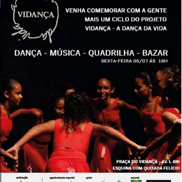 Evento Ciclo de atividades do projeto “Vidança - A Dança da Vida” Linguagens Artes Integradas Artes Visuais Dança Hip Hop Música Popular Tags #DançasDramáticas #HipHop #DançasUrbanas #Capoeira #Karatê #DançaContemporânea #Funcional #CorteCostura #Violão #Flauta #ArtesManuais #BaléClássico #Percussão #Apresentação #Vidança #Dança #Dançadavida #Música #Teatro #COMDICA #CEGÁS #CASABRAZIL #BOLHAD'ÁGUA #ENEL #CRIANÇAESPERANÇA #SECULT #SECULTFOR #MDIASBRANCO #CEDCA #GOVERNODOESTADODOCEARÁ Descrição curta O Vidança realizou no dia 06/07, às 18h, uma demonstração das atividades realizadas na Associação para a comunidade do bairro Vila Velha. Site https://www.vidanca.org.br/ Sobre Responsáveis Total de Público 250 Inscrições: Aberto ao Público Classificação Etária: Livre Mais Informações: (85) 3262-7599 Acessibilidade: Tradução para LIBRAS: Não Áudio Descrição: Não Descrição O evento contou com apresentações de Dança, Percussão, Quadrilhas e ainda contou com um bazar, com roupas seminovas sendo comercializadas a partir de R$ 1,00. O “Vidança - A Dança da Vida” é um projeto apoiado pelo Mecenas, Casa Civil e FECA/CEDCA. Galeria Denunciar Contato Nome: E-mail: Tipo: Mensagem: Denúncia anônima Receber cópia da denúncia Cancelar Enviar Denúncia Enviando mensagem Nome: E-mail: Tipo: Mensagem: Mensagem anônima Enviar somente para o Responsável Receber cópia da mensagem Cancelar Enviar mensagem Enviando mensagem