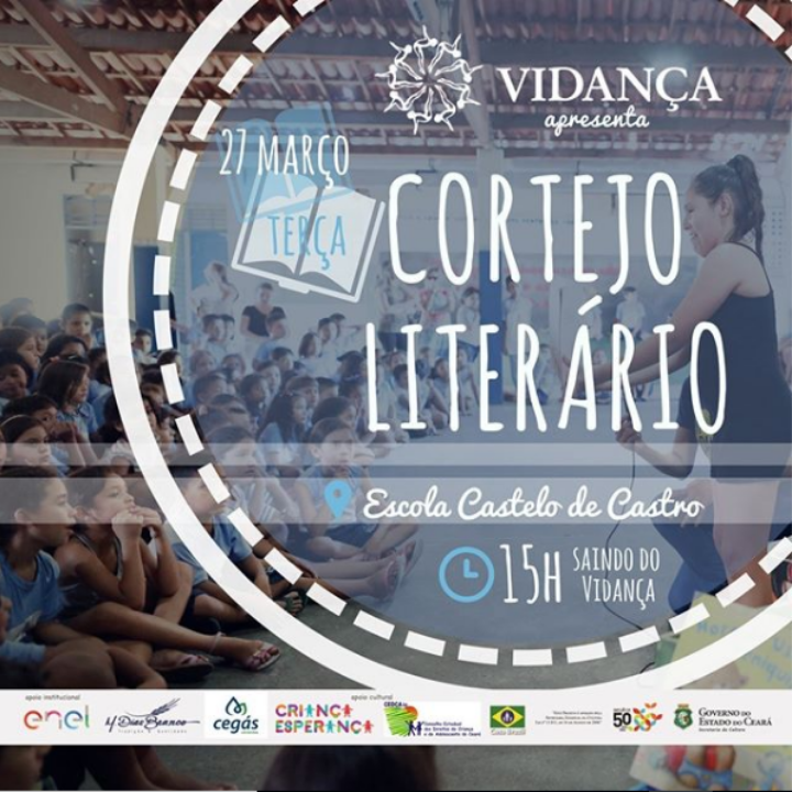 Evento Cortejo Literário - 27/03 Linguagens Dança Música Popular Teatro Tags #DançasDramáticas #HipHop #DançasUrbanas #Capoeira #Karatê #DançaContemporânea #Funcional #CorteCostura #Violão #Flauta #ArtesManuais #BaléClássico #Percussão #COMDICA #CEGÁS #CASABRAZIL #BOLHAD'ÁGUA #ENEL #CRIANÇAESPERANÇA #SECULT #SECULTFOR #MDIASBRANCO #CEDCA #GOVERNODOESTADODOCEARÁ #Teatro #Vidança #Dança #Dançadavida #Música #CortejoLiterário Descrição curta O Cortejo Literário do mês de março ocorreu no dia 27/03, na Escola Castelo de Castro, às 15h. Site https://www.vidanca.org.br/ Sobre Responsáveis Total de Público 100 Inscrições: Aberto ao Público Classificação Etária: Livre Mais Informações: (85) 3262-7599 Acessibilidade: Tradução para LIBRAS: Não Áudio Descrição: Não Descrição O cortejo percorreu as ruas do Vila Velha rumo à Escola Castelo de Castro. O evento contou com Contação de Histórias, “Tambatuque DasMarias” - projeto apoiado pelo Criança Esperança e Cultura Infância - Capoeira e a releitura da dança regional Coco. Galeria Denunciar Contato Nome: E-mail: Tipo: Mensagem: Denúncia anônima Receber cópia da denúncia Cancelar Enviar Denúncia Enviando mensagem Nome: E-mail: Tipo: Mensagem: Mensagem anônima Enviar somente para o Responsável Receber cópia da mensagem Cancelar Enviar mensagem Enviando mensagem