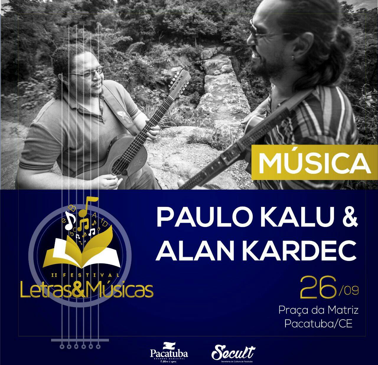 Paulo Kalu e Alan Kardec apresentam o show “Violão do Nordeste”, onde misturam musica instrumental, lamentos, canções, composições próprias e relembram grandes nomes da musica brasileira.Um show envolvente e emocionante, regado com Viola Caipira, Bandolim, Violão e Vozes.