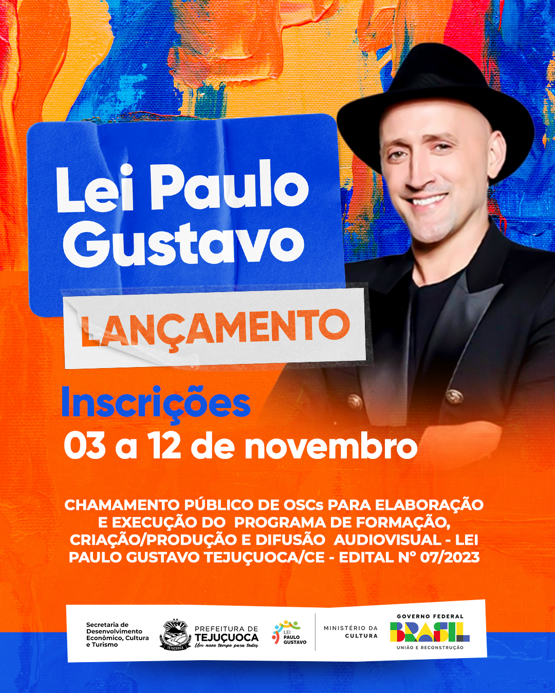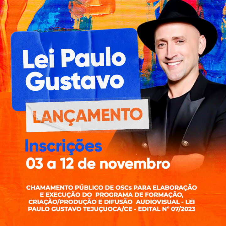 EDITAL DE CHAMAMENTO PÚBLICO PARA SELEÇÃO DE ORGANIZAÇÃO DA SOCIEDADE CIVIL PARA REALIZAÇÃO DO PROGRAMA DE FORMAÇÃO, PRODUÇÃO E DIFUSÃO AUDIOVISUAL - LEI PAULO GUSTAVO - TEJUÇUOCA/CE - EDITAL Nº 07/2023 - AUDIOVISUAL
