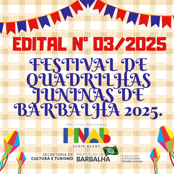 EDITAL DE FOMENTO A AÇÕES CULTURAIS - POLÍTICA NACIONAL ALDIR BLANC - BARBALHA - EDITAL Nº 03/2025 -FESTIVAL DE QUADRILHAS JUNINAS DE BARBALHA 2025.