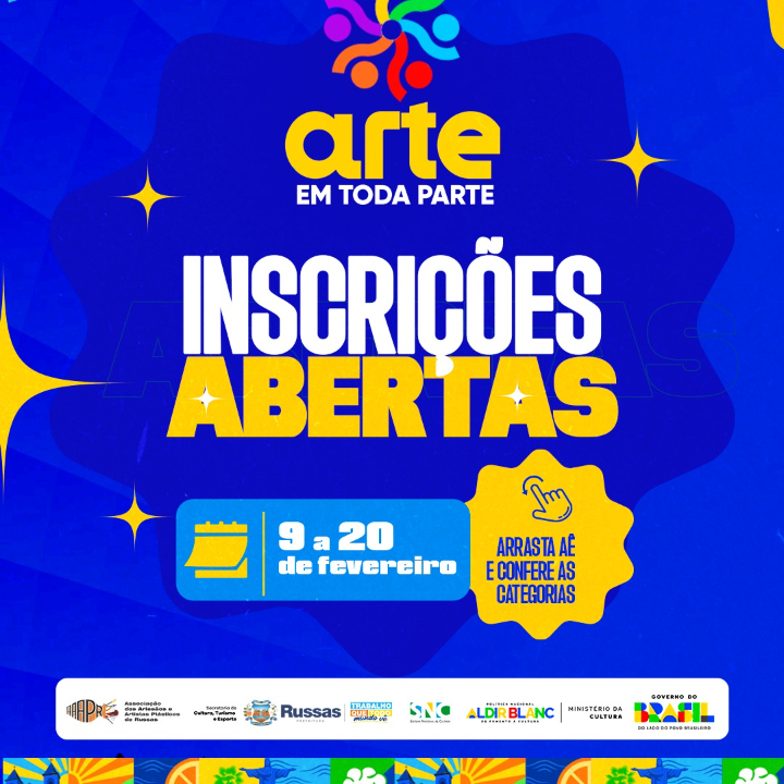 A Associação dos Artesãos e Artistas Plásticos de Russas – AAAPR, entidade executora do Projeto “Arte em Toda Parte”, em parceria com a Secretaria Municipal da Cultura, Turismo e Esporte de Russas, torna público o presente CREDENCIAMENTO DE ARTISTAS E GRUPOS CULTURAIS, com recursos oriundos da Política Nacional Aldir Blanc – PNAB Ciclo 2, destinado à composição da programação artístico-cultural do referido projeto.