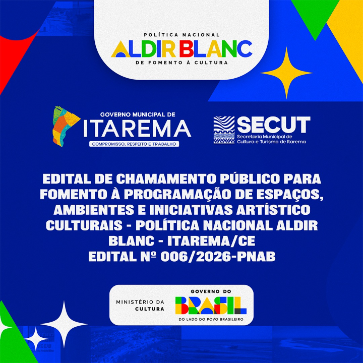 EDITAL DE CHAMAMENTO PÚBLICO PARA FOMENTO À PROGRAMAÇÃO DE ESPAÇOS, AMBIENTES E INICIATIVAS ARTÍSTICO CULTURAIS - POLÍTICA NACIONAL ALDIR BLANC - ITAREMA/CE - EDITAL Nº 006/2026-PNAB
