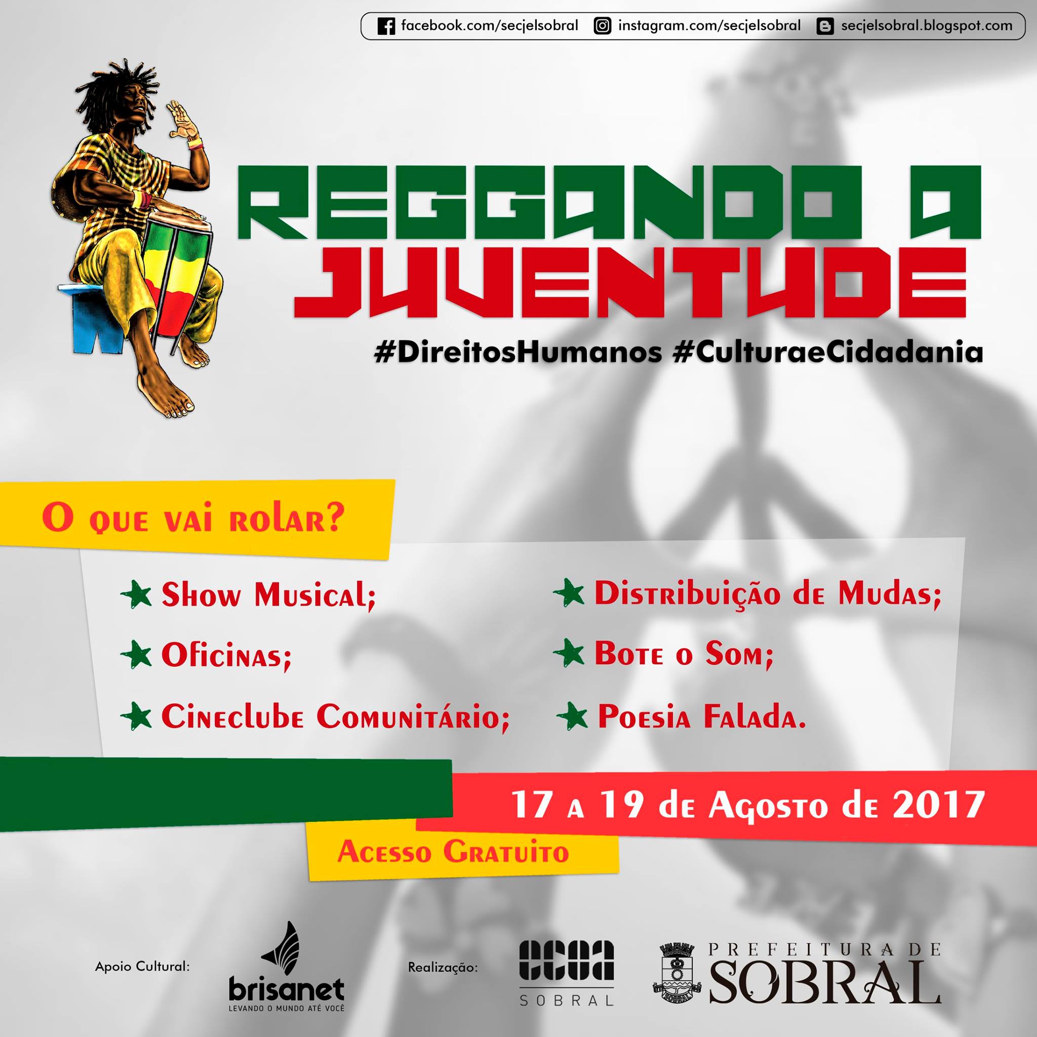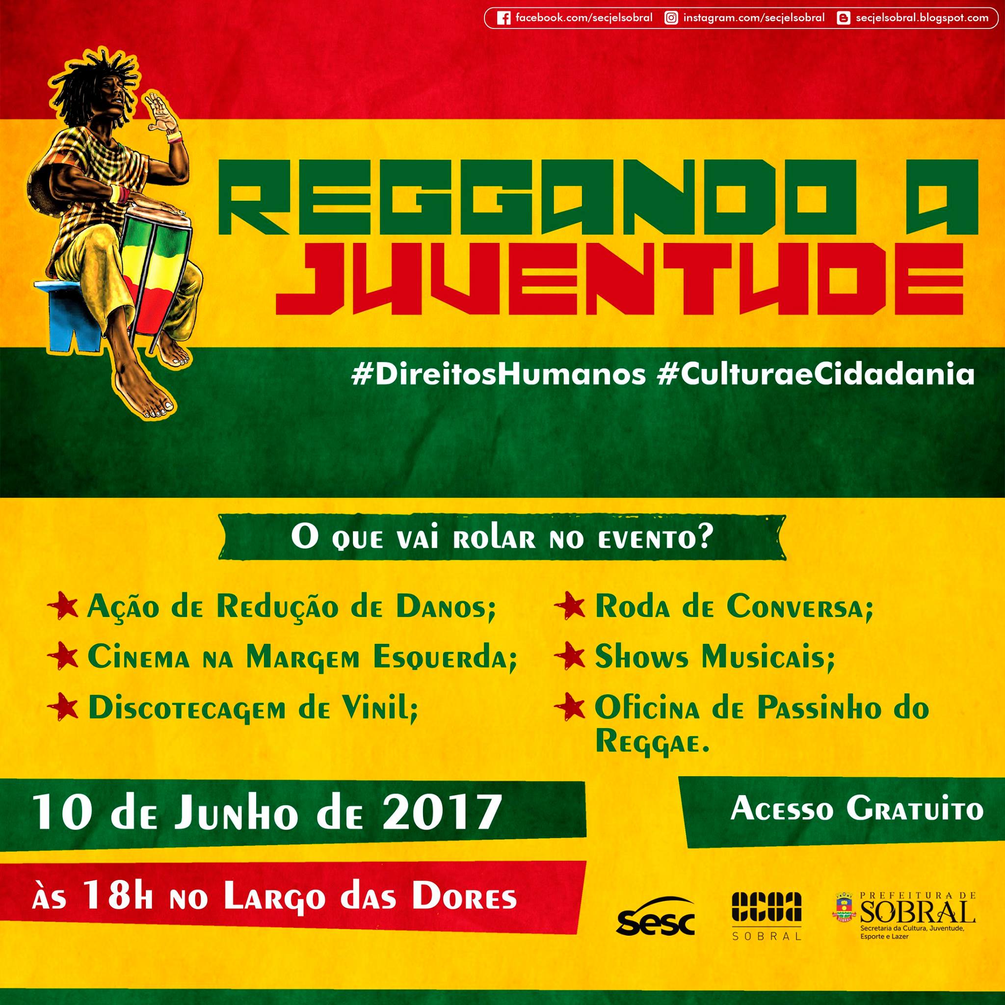 #ReggandoaJuventude #ocupaSobral #SECJELSobral #ECOASobral #SDHASSobral #CPDSobral #DireitosHumanos #CulturaeCidadania